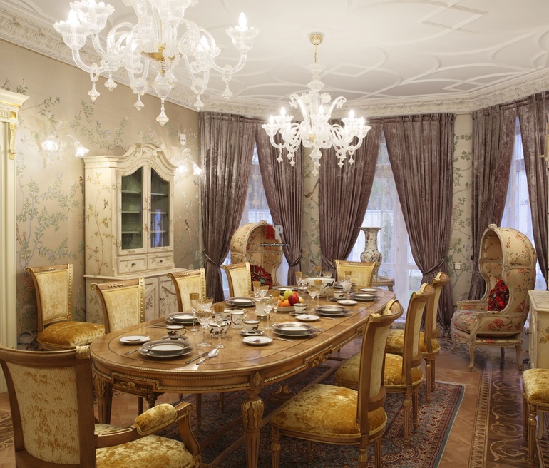 А мне пока это так голо видится: получается 10 кв м только под стол и стулья! Хотя, может быть, это от непривычки. У меня никогда не было столовой:)