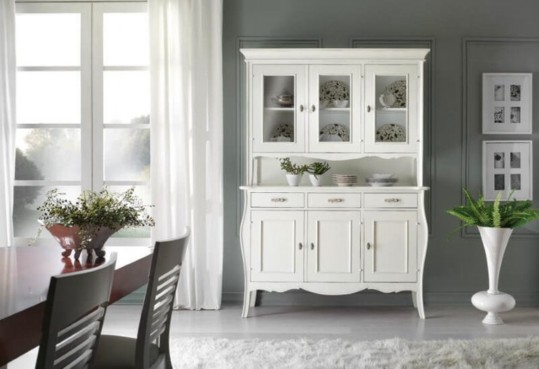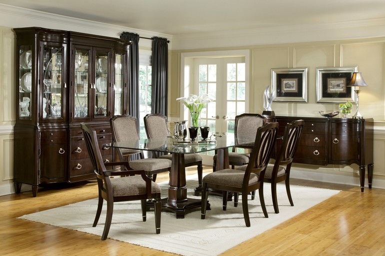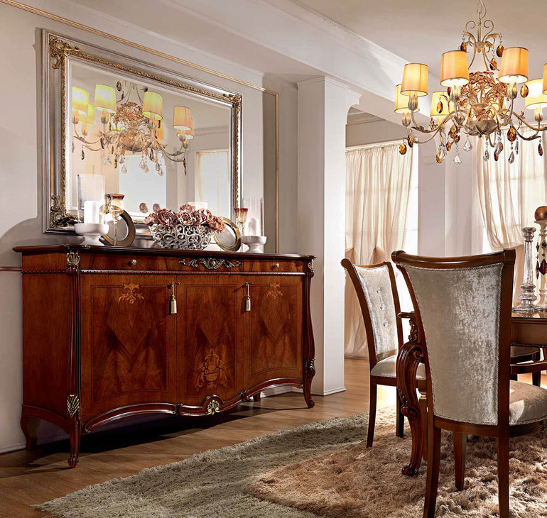 Смотря какая комната по форме, если « вагоном» то наверное стол и стулья, все, если есть место для серванта или комода кухонного как вспомогательный стол для сервировки( как на картинке вам прислали» -вай нот . По стенам можно тарелки развесить. Зеркало тоже будет визуально увеличивать пространство