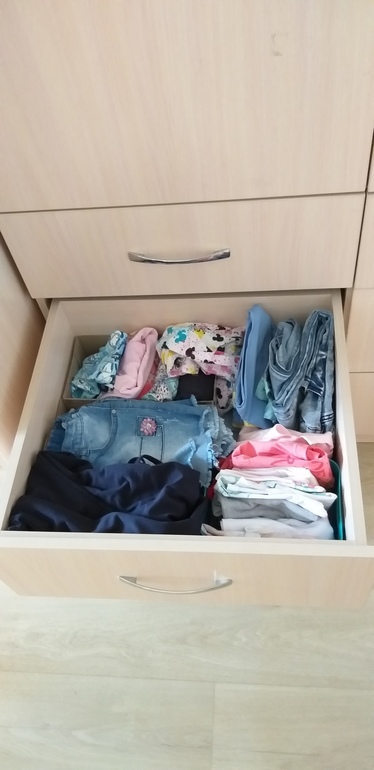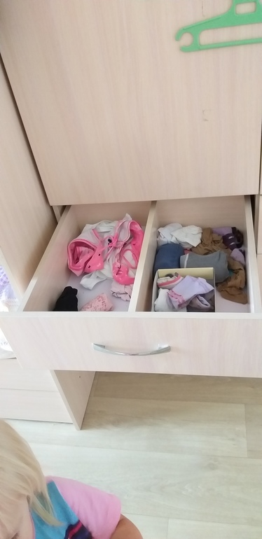 в шкаф сделайте 2 штанги (в 2 ряда), а для трусов, носочков, колготок, футболок - комод ( у каждой по 2 ящика, например)