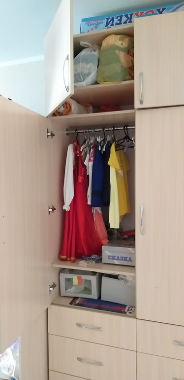 добавьте еще комод для белья к противопол стене. Для вашего возраста этого вполне достаточно