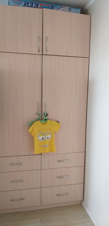 Я бы на вашем месте не ставила шкаф,может быть подумать о том, чтобы соединить ваш шкаф и детский где-нибудь в коридоре или вашей спальне.