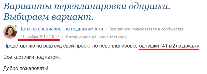 "до того как я опубликовала несколько постов с названием "из однушку в двушку" я не видела постов на BB с таким заголовком."