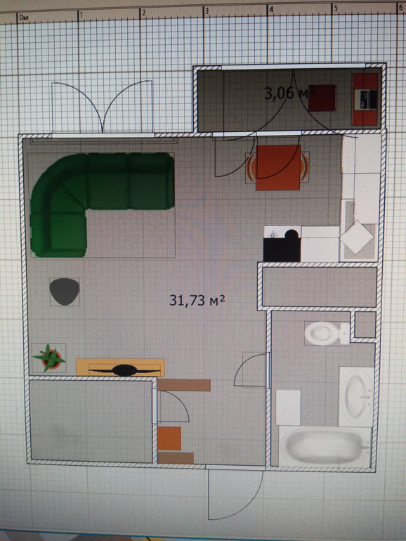 3) нужна ли капитальная стена в месте, где сейчас обувница напротив двери с/у? Муж за стену, я за обувницу. Если ставить стену, проход будет примерно 1 м. - хватит ли для проноса крупногабарита, например дивана?