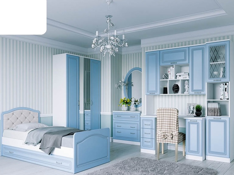 Или, если знаете, посоветуйте, пожалуйста, мебель в таком бледно-голубом цвете (номинально нужен шкаф, уголок школьника, пенал и, возможно, комод) других производителей.