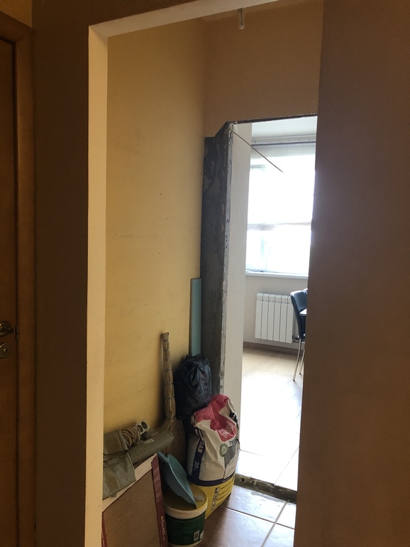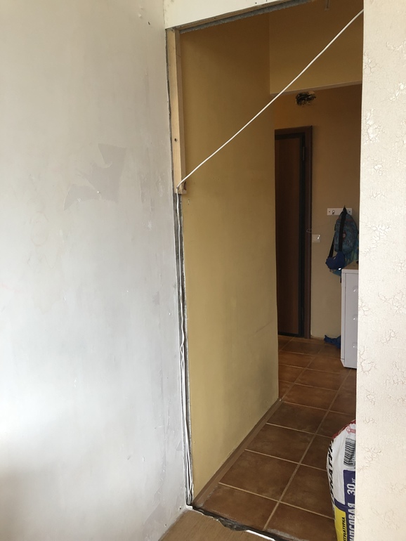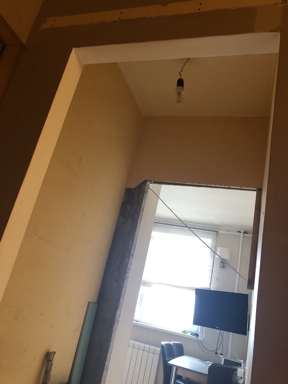 Подскажите, пожалуйста, как можно оформить такой коридорчик- проход между кухней и коридором ? Будем ставить дверь, которая если смотреть из кухни открывается наружу вправо. Коридор под покраску стены , на кухне со стеной пока не определились. Сделать цвет в продолжение коридора? Под потолком была антресоль, сейчас как это можно оформить. Какой то колодец получился ;)