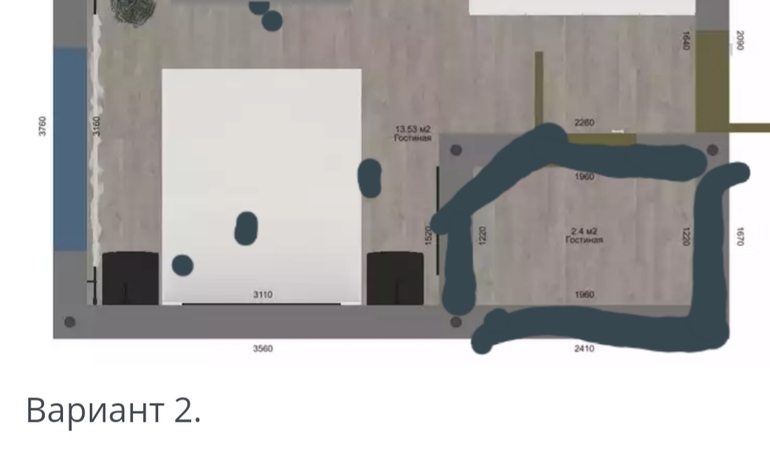 Многие голосуют за 2й вариант, но мне ближе вариант N1. В таком варианте больше мест для хранения и очень уютная спаленка.