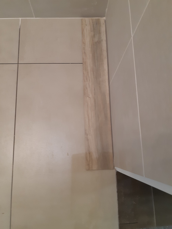 И как ее разложить? Бордюры не хочется использовать. Если положить листочки над ванной, где душевой уголок деревяшки, а остальное все просто светлой.Вот деревяшки 10×60