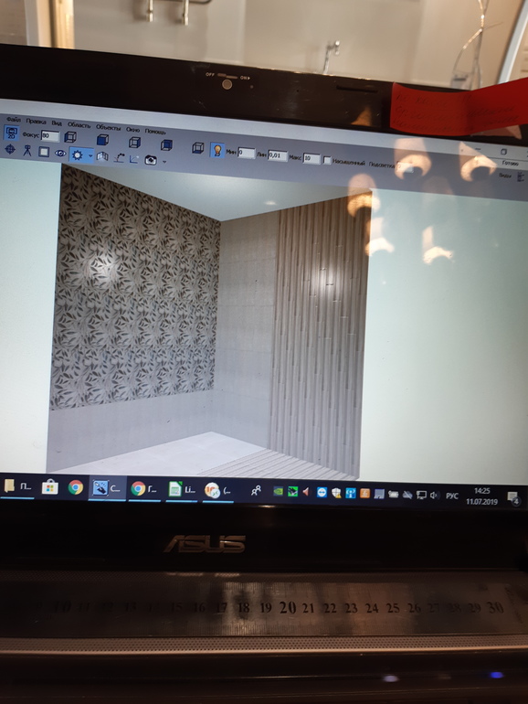 Вам понравилась картинка? Делайте точно так же: пол, стена, столешница - дерево. Остальное листики. Если будете экспериментировать, так уже не получится. Мне листики понравились!