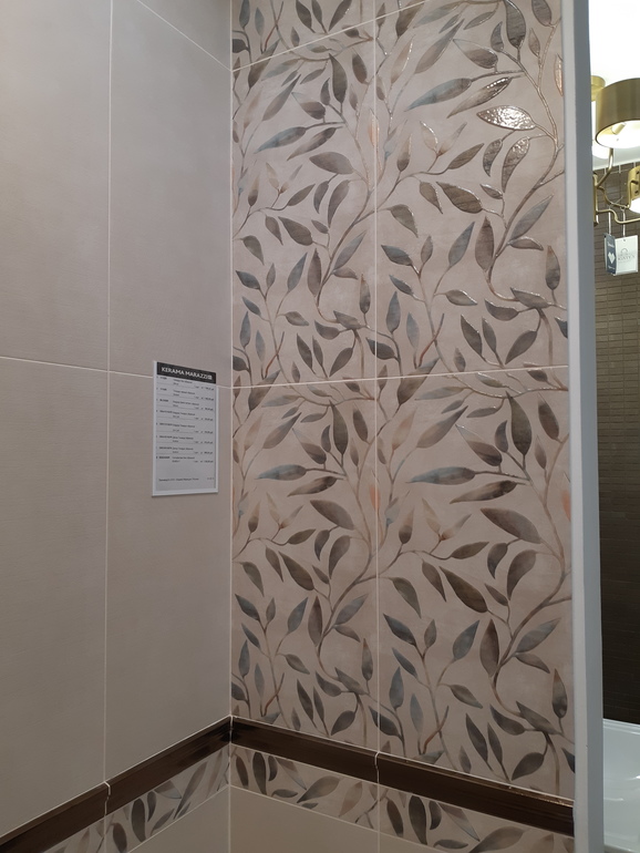 плитка в сочетании листочков и однотонной нравиться, но не нравиться с древесным рисунком. Она идет другой тональности, чем однотонная. Если б в цвет и тон попали, то может быть. Самый беспроигрышный вариант - это контраст, подбирать древесную плитку под цвет листочков, как это и сделано на понравившейся вам фото. Но и тут конечно надо следить за цветовой температурой, чтоб она не различалась, иначе будет ужас.