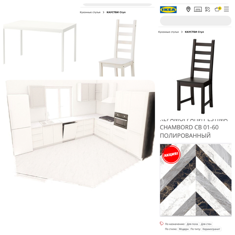 Дано: кухня в стадии ремонта. Будут серые стены, с акцентом у обеденной зоны, белый гарнитур (пример на фото), фартук - плитка на фото, на полу бело-серая плитка, техника и мойка будут чёрные скорее всего.