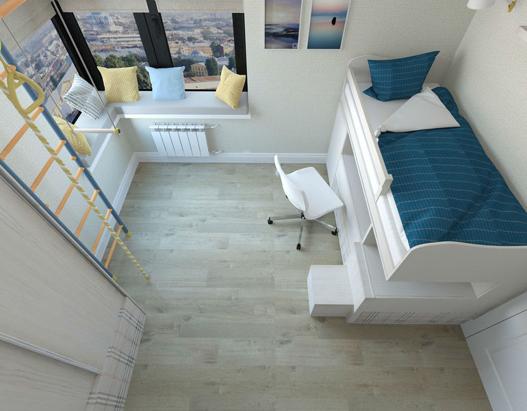 Также заказчица хотела все сделать максимально просто , белые стены ,но и детские гарнитуры и шкафы уже были куплены.