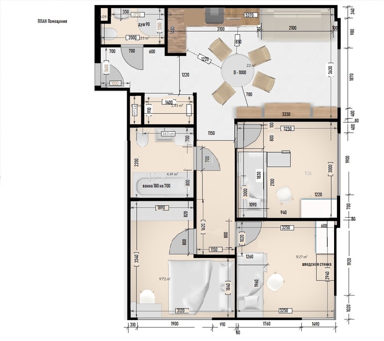 мальчика, девочки и спальни родителей , а так же общая гостиная - кухня.