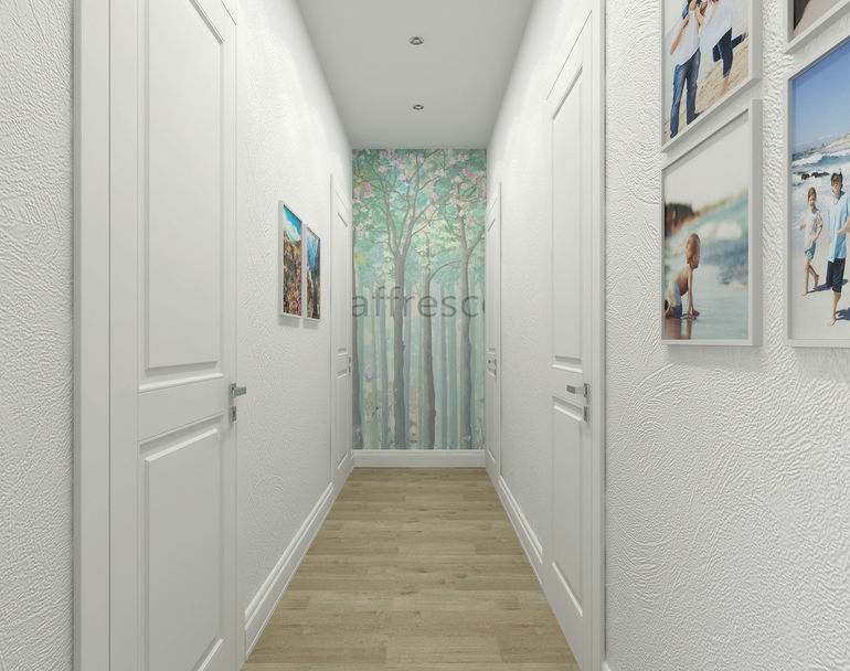 В длинном коридоре мне хотелось раздвинуть стены и получилось вот так:
