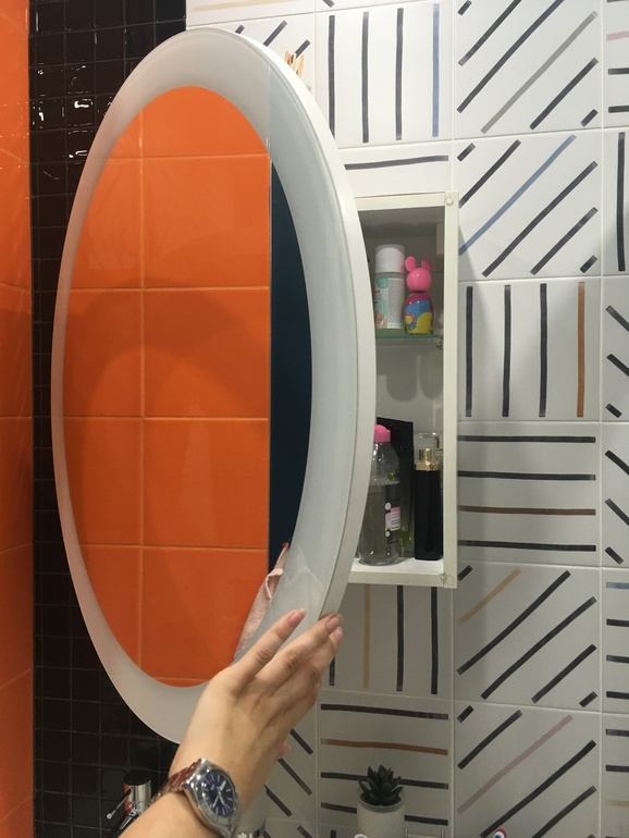 ЗЕРКАЛО висит не правильно. Вернее, оно неправильно открывается. Надо было его перевернуть, чтобы этот круг открывался в другую сторону (праворукой должна быть дверка). А то приходится отходить , когда эта махина в открытом состоянии.