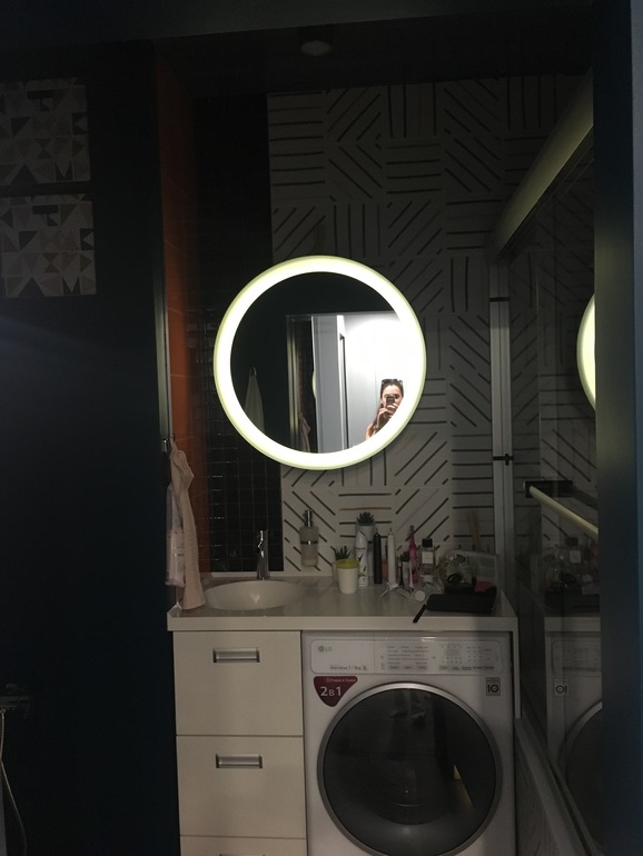 Отлично ! А зеркало специально не по центру? у нас так же, только слева машинка установлена будет. Вот думаю как крепить зеркало, по центру или ближе к раковине... и подскажите еще, пожалуйста, где зеркало такое заказывали?