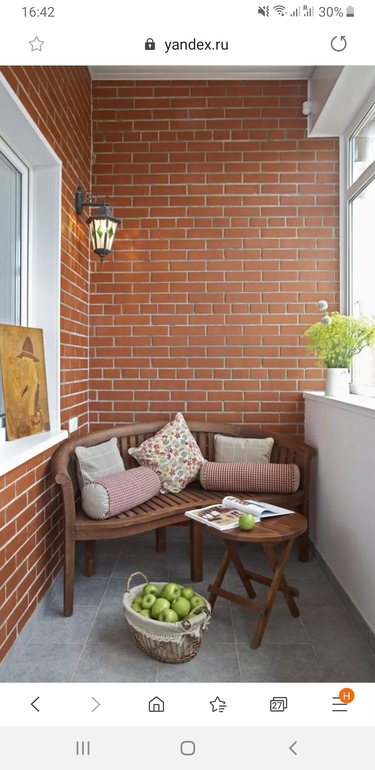 Интерьерное решение лоджий, балконовДевочки, одна стена на балконе из красного кирпича и мы его хотим просто покрыть лаком, а другие стены просто покрасить в бежевый