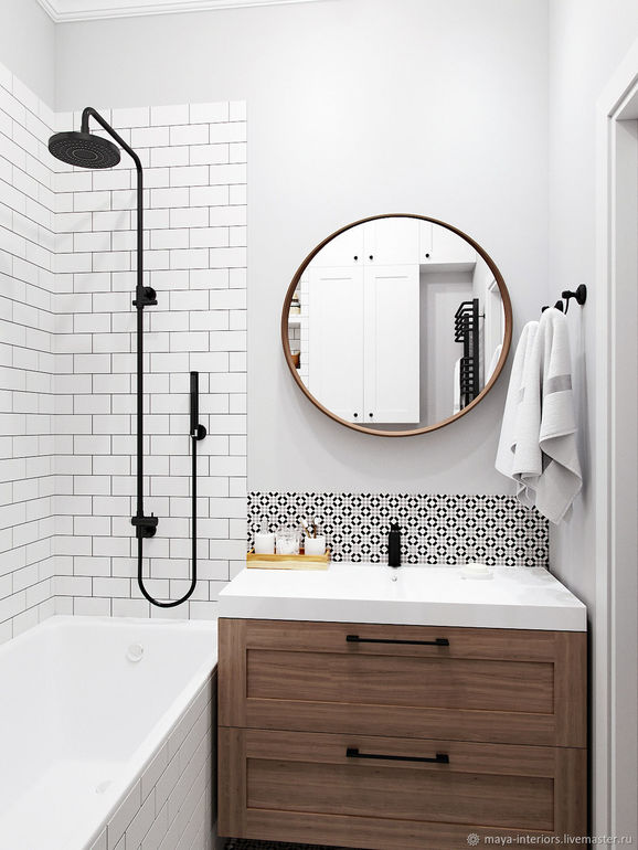 Вопросы и ответыПонравился дизайн ванной комнаты. Стильная черно-белая плитка с мелким рисунком. Попробовала найти ее в интернете, нашла, но там масштаб в 9 раз больше.