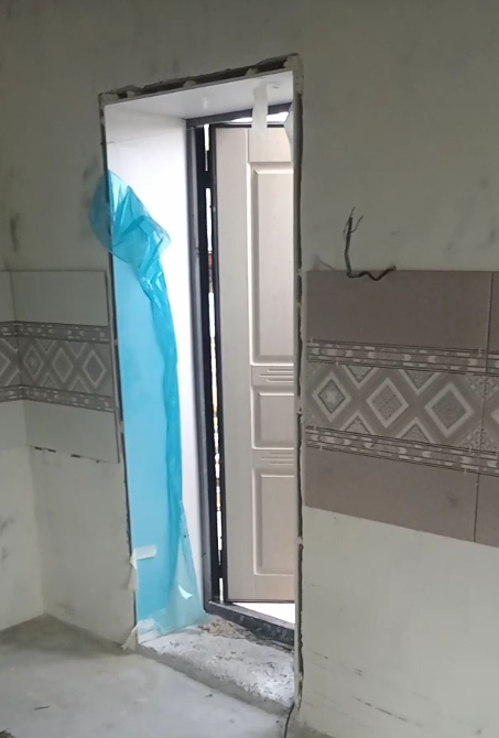 То есть из кухни (пока ремонт ещё идёт) мнжкомнатная дверь, потом портал из материала, как межкомнатная дверь и входная с выходом на веранду.