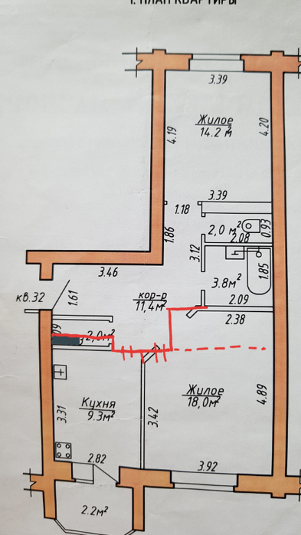 Что имеем, двухкомнатная квартира 62.9 кв.м., папа, мама и двое детей (мальчики, 5 лет и 1 год). Скорей всего остаёмся в этой квартире насовсем и поэтому хотим немного подвигать стены 🙂.