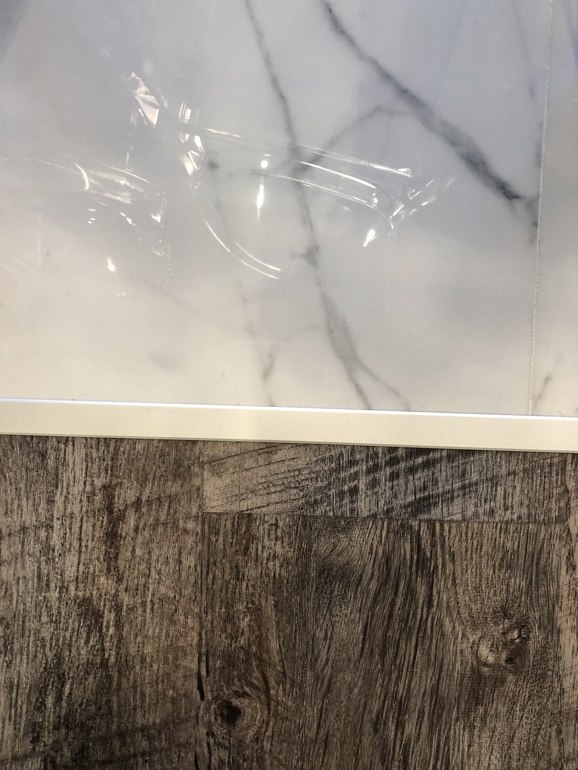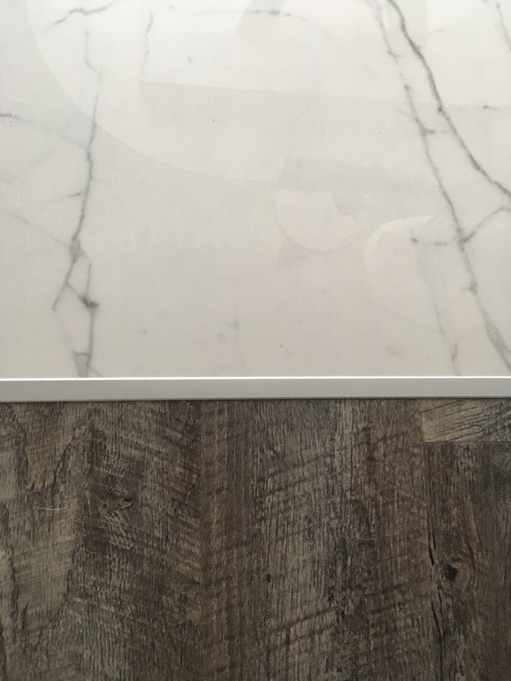 на полу виниловый ламинат, который не боится влаги. Писали тут, что он продавливается, в одном из проектов он лежит уже второй год - с ним все хорошо. Возможно, зависит от производителя. Укладываем не самый дешевый винил, ценник у него 2200 руб за кв м - вот с ним проблем нет