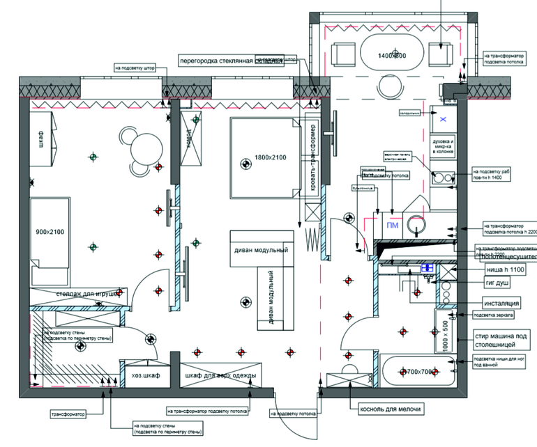 поменяла комп, проект остался на старом компе. Удалось найти только такой план (со светом), но для общего понимания хватит
