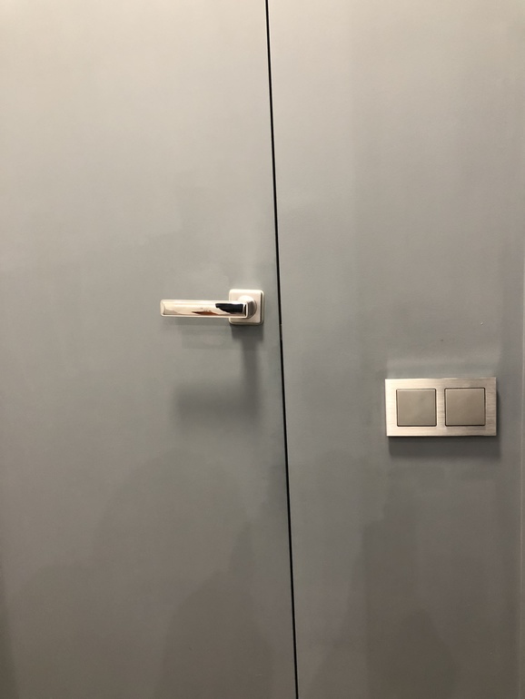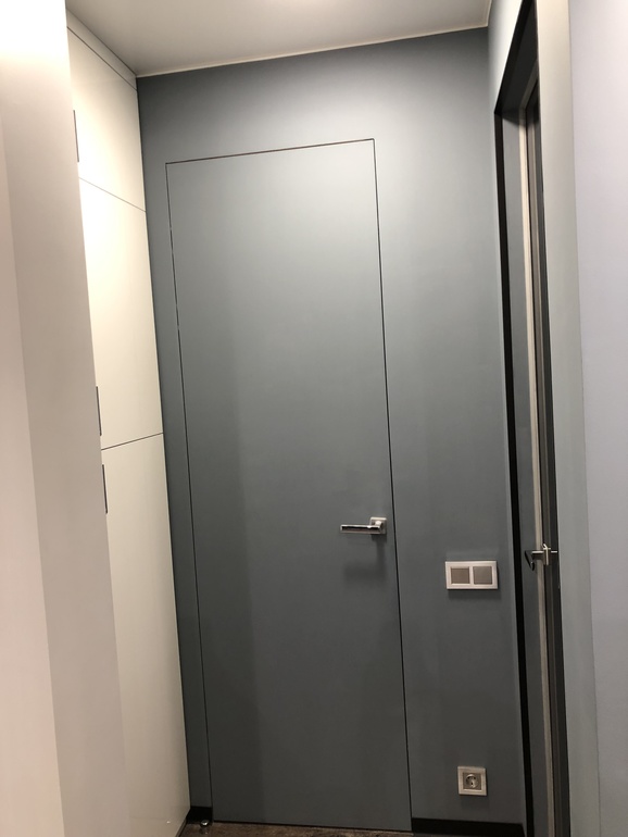 Кстати, в этой квартире и остальные двери в скрытом коробе (без наличников и доборов) и высота у них 2,3 метра. Если есть возможность увеличить высоту дверного проема - увеличивайте не задумываясь, такие двери всегда смотрятся круто