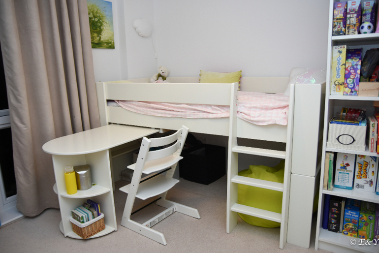 Вот такие вот изменения в комнате. Думаю на несколько лет, а потом просто опустим кровать и там уже мой подросток сама решит как и что она хочет.