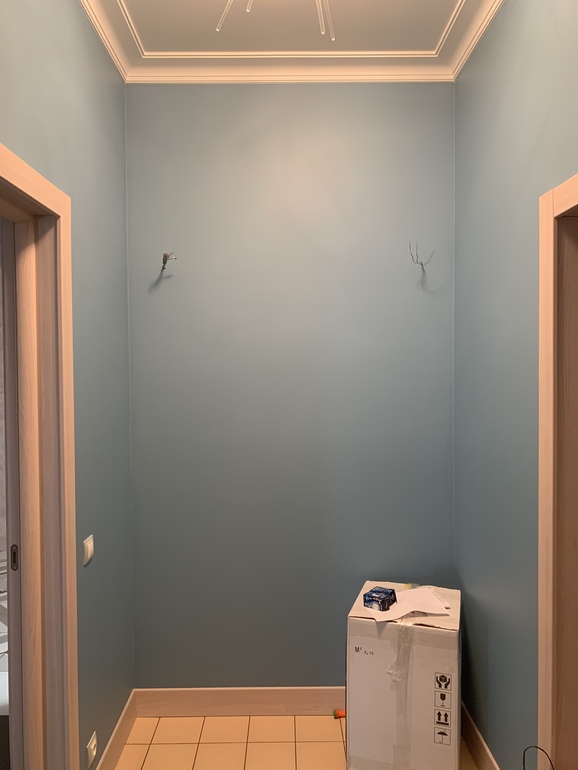 Это краска Benjamin moore, матовая , серия яичная скорлупа. Покупали на экспострое у них там магазин, колеровали на месте , цвет не подскажу , 3 года назад