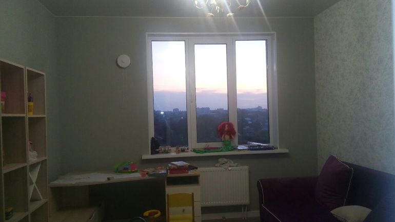 Интерьерное решение детской комнатыВ детской окно находится несимметрично. С правой стороны диван с левой - стол. В натяжном потолке сделана закладная. Какую гардину повесить? Во всю длину? Закругленную симметрично относительно окна(с левой стороны не до конца будет). Может еще какие то варианты?