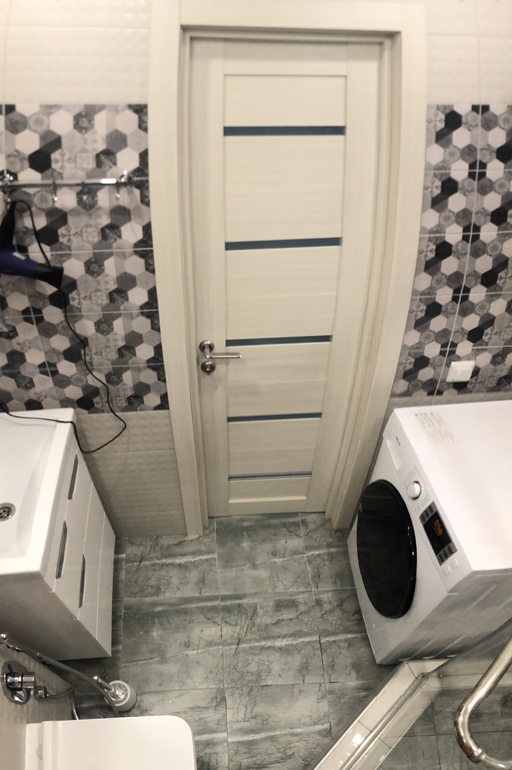 Ванная с душевой кабинетно машинка с сушкой (белье в том климате само никак не сохнет), полотенцесушитель, раковину над машиной отказались, так как нужен шкафчик для химии и аксессуаров)