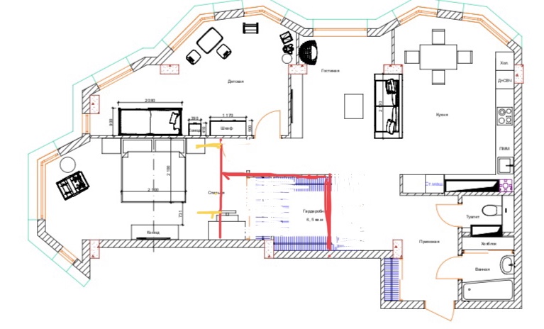 Хотим в одной комнате перенести стену (уменьшить площадь комнаты)+перенести благодаря этому гардеробную. НО! Прошу помочь мне сделать это бесплатно (для практики) с указанием размеров стен и итоговой площади комнаты. Заранее спасибо🤘🏽