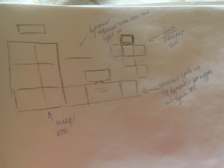 У нас очень мало мест хранения в квартире (один шкаф в коридоре, комод и две тумбочки в спальне, ящик под кроватью)..отсюда следует желание сделать шкаф для одежды в гостиной.