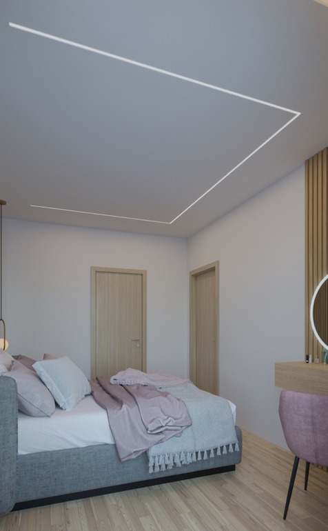 У нас в спальне и линия, и споты. Спотами пользуемся в основном если нужно в тёмный день достать одежду из шкафа или во время уборки. У нас их 5, выложены зигзагом и можно включать 3 или 2. Линию обожаю, на полной мощности очень даже светло. Не как споты, но в целом достаточно. Очень удобно пользоваться приглушенной линией, включил, и никто не просыпается. Прикроватные светильники я в конце концов убрала за ненадобностью 🤷♀️🙂