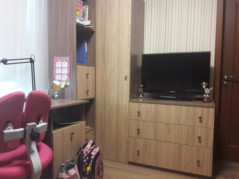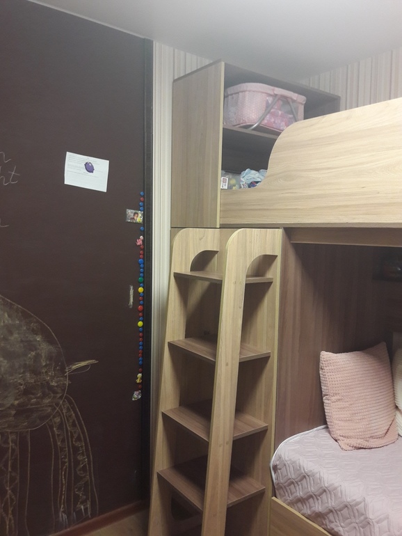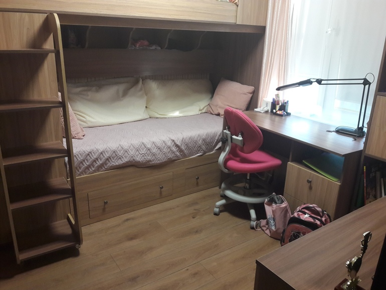 В итоге имеем: дочку-первоклассницу-1 штуку, комнату маленькую (около 9 квадратов))) , родителей, которые совсем не бояться кровати-чердаки, (мы прямо наоборот их очень уважаем), маньяки дополнительных спальных мест и мест для хранения.