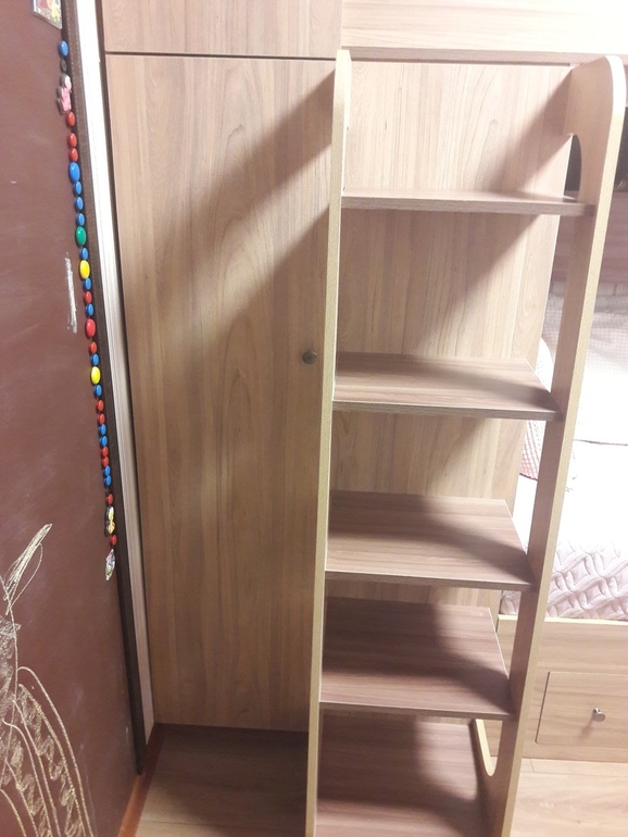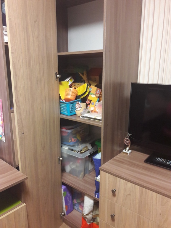 Шкаф угловой. Там просто полки. Там планирую в коробках хранить ненужные игрушки выше, ниже для игрушек, которые в ходу) (тут порядка еще нет( Дочка что-то накидала((