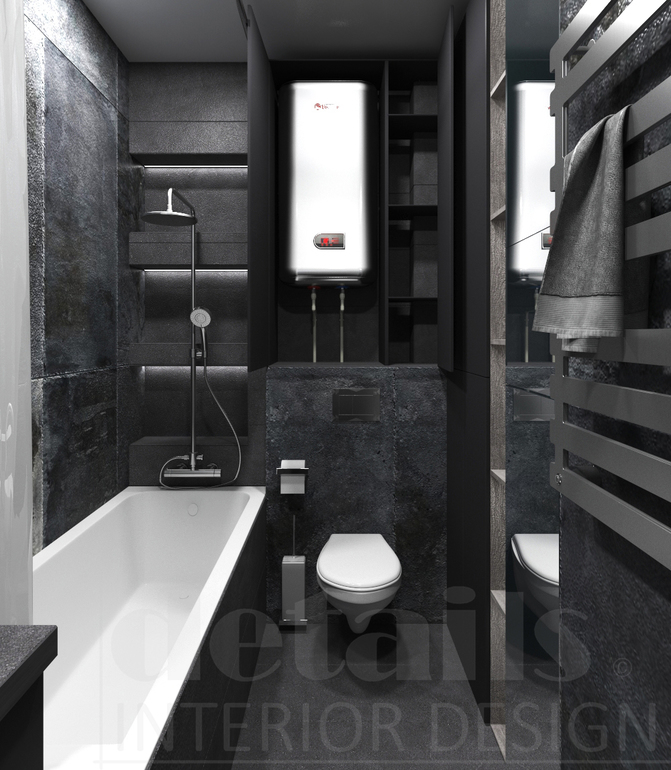 Дизайн интерьера темной ванной комнаты 3,8 м2
