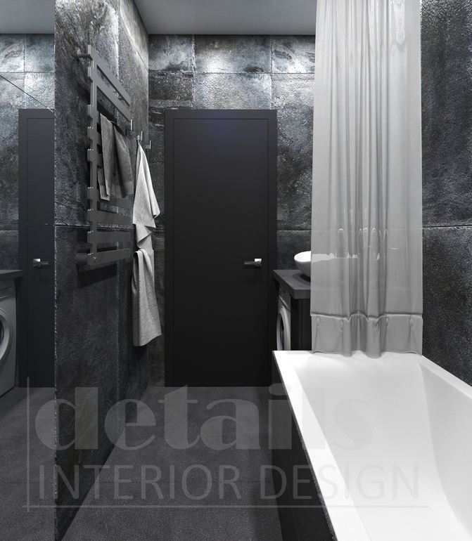 Вся квартира будет выполнена в серых тонах с темными акцентами. Пока что готова ванная комната, в первую очередь начали делать дизайн для нее.