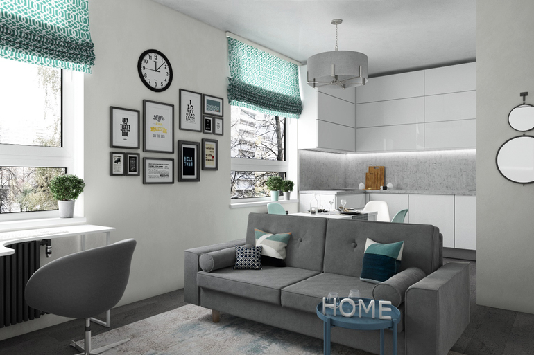 Делюсь планировочным решением квартиры и визуализацией основной комнаты в монохромном сканди.