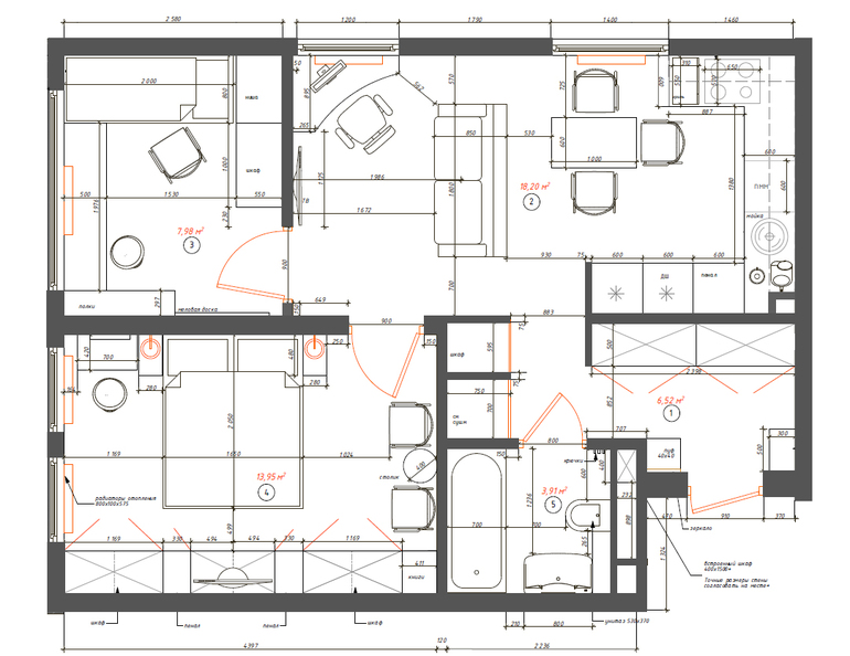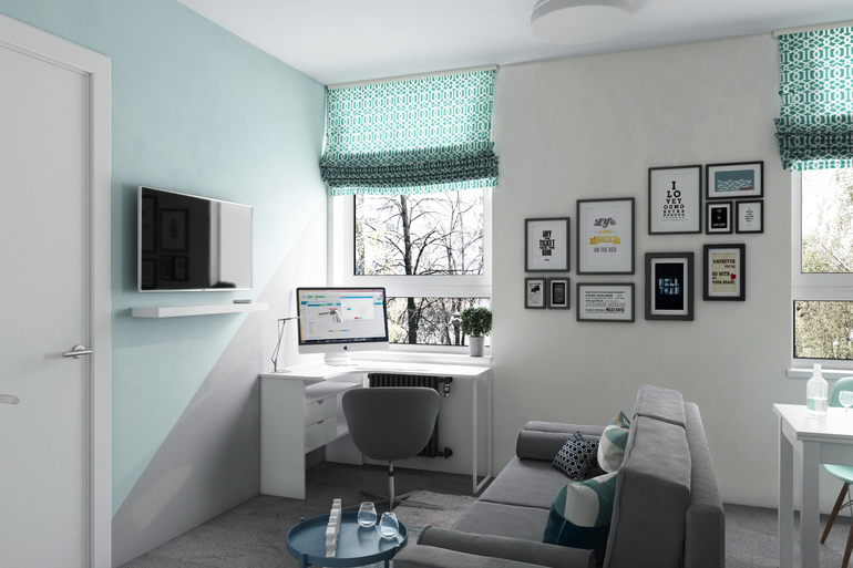 - в гостиной рабочее место для мужа-программиста и дополнительным спальным место