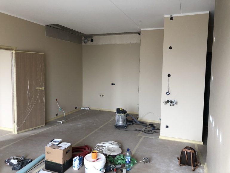 Снесли вентиляционный короб на кухне, потому что он мешал моей идее довести фартук кухни до потолка💫