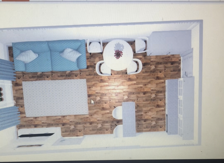 Понравился 1-ый вариант, и стол и остров, раз получается так сделать:) И от стола видно телевизор.