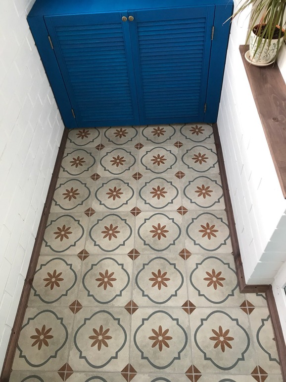 Что было сделано: выровняла порог и часть стены под окном, заштукатурила кривые и битые кирпичи. Покрасила стены и потолок. Уложила плитку на пол. Сделала подоконник. Спроектировала шкаф с учетом всех вещей, которые собирались хранить, в первую очередь нужно было спрятать шины. Материалы для шкафа закупили в Леруа и собрали шкаф вместе с мужем.