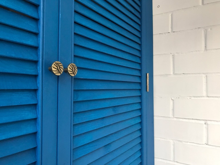 Красила кисточкой узкой до 10 см ( примерно) чтобы хорошо между ламелями и в углах прокрашивала. Из тонкостей - надо следить, чтобы пока красите одну сторону, краска каплями не стекала сквозь щели на другую сторону, надо такие капли сразу размазывать, а то перевернете дверцу, а там все в засохших подтеках. А так ничего сложного.