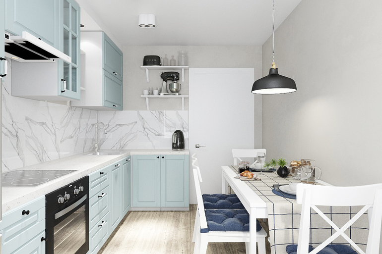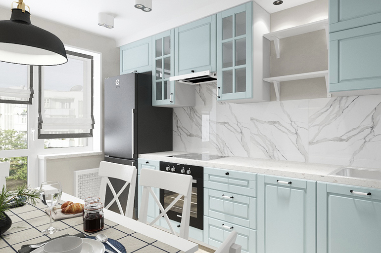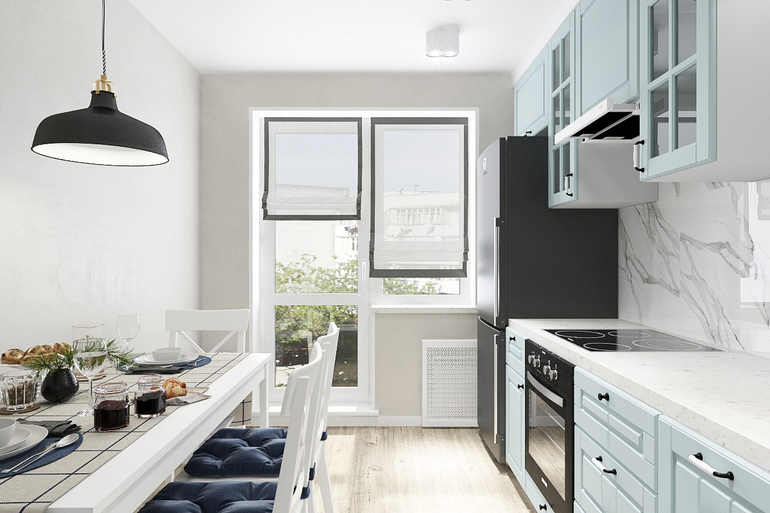 Авторские проекты дизайнеров.(Посты не по теме будут удаляться!)Светлая кухня - мечта хозяйки! На данной площади максимально рабочего пространства.