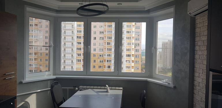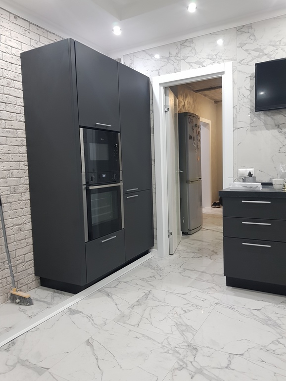 Сейчас старый стол стоит 90×120. Для дивана около черных шкафов 170см. Все отлично вписывается. Раскладывать мы его будем очень редко, он гостевой будет.