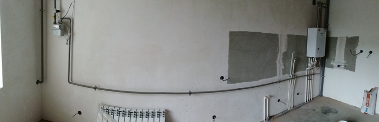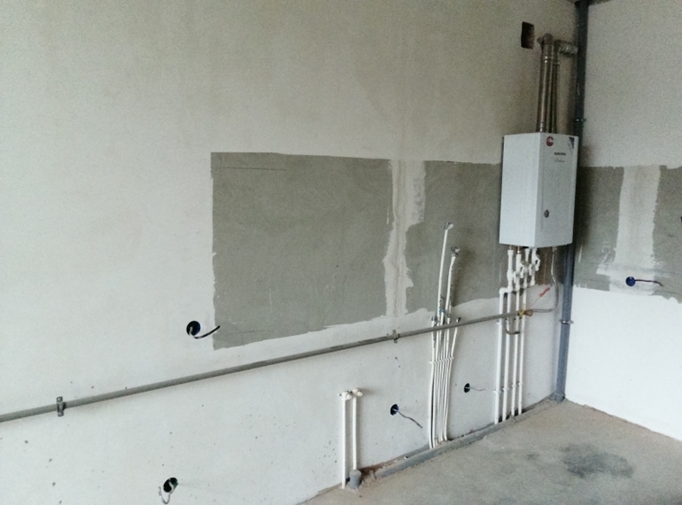 Дано: кухня гостиная в квартире с газовыми трубами и собственным котлом.