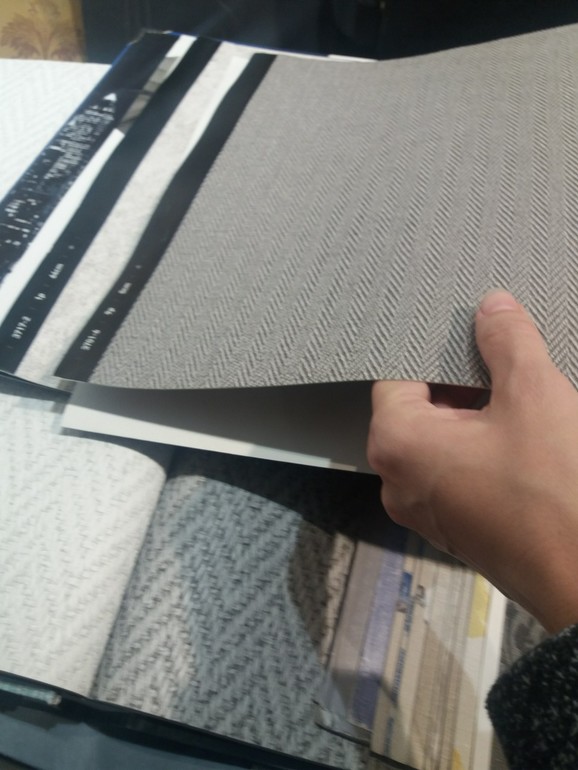 Мне кажется, рябить не будут. У нас похожие,только без елочки, издалека вообще смотрятся однотонными, фактуру только вблизи видно