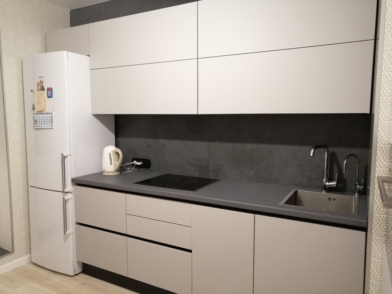 я как-то спрашивала советы по планировке гарнитура, но прожив с холодильником у входа - поняла, что во-первых, это не удобно. Во-вторых, была щель от стены до холодильника, которая меня бесила.