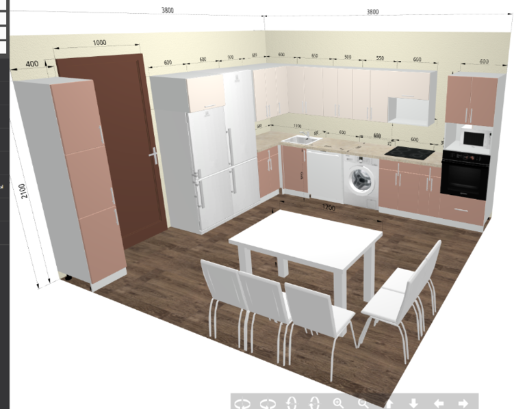 Стол со стульями нарисован в углу, так как там планируем делать мягкий уголок (муж всегда о нем мечтал).
