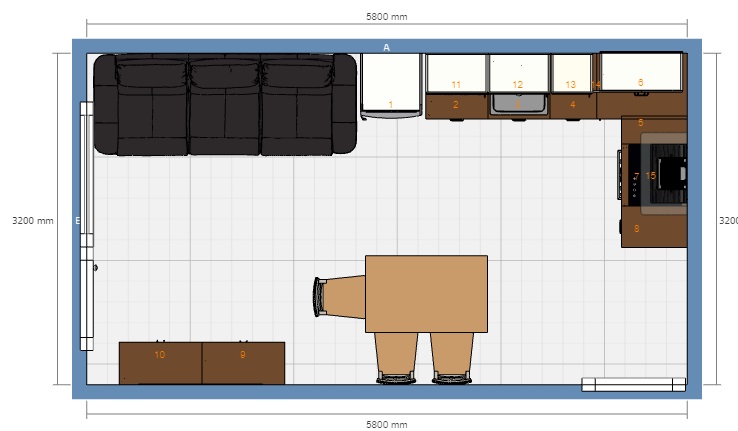 Вариант 3. Кухня с прямоугольным столом и холодильником слева
